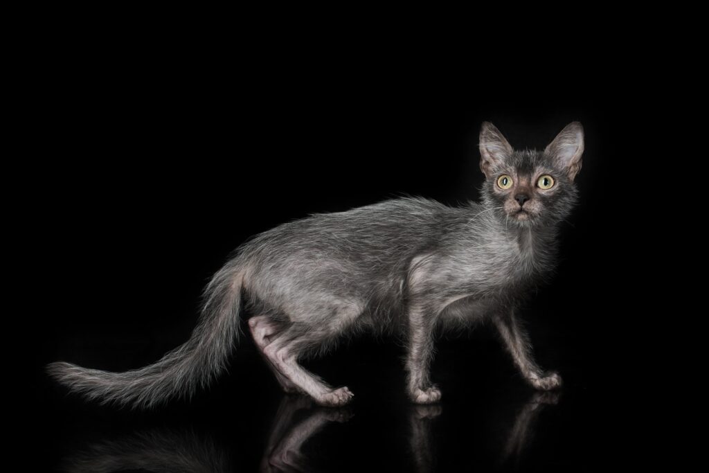 Because their hair is sparse, a Lykoi’s skin is more exposed to the sun. Like hairless breeds, they can get sunburned. For this reason, Lykoi should be kept as indoor-only pets. If they enjoy a supervised outing in a “catio” or on a harness, ensure it is during times of low sun exposure or in a shaded area.